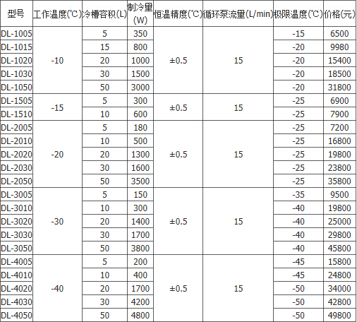 DL系列低溫冷卻液循環(huán)泵采用風冷式全封閉壓縮機組制冷及微機智能控制系統(tǒng),低溫冷卻液循環(huán)泵提供低溫循環(huán)冷卻水(液)流或低溫恒溫水(液)流,以滿足用冷卻水及低溫液體去降溫或恒溫儀器,如旋轉(zhuǎn)蒸發(fā)器、發(fā)酵罐、電子顯微鏡、低溫化學反應釜、電子能譜儀、質(zhì)譜儀、密度儀、冷凍干燥機、真空鍍膜儀、反應釜等。也可把多種容積直接在槽內(nèi)低溫恒溫實驗。